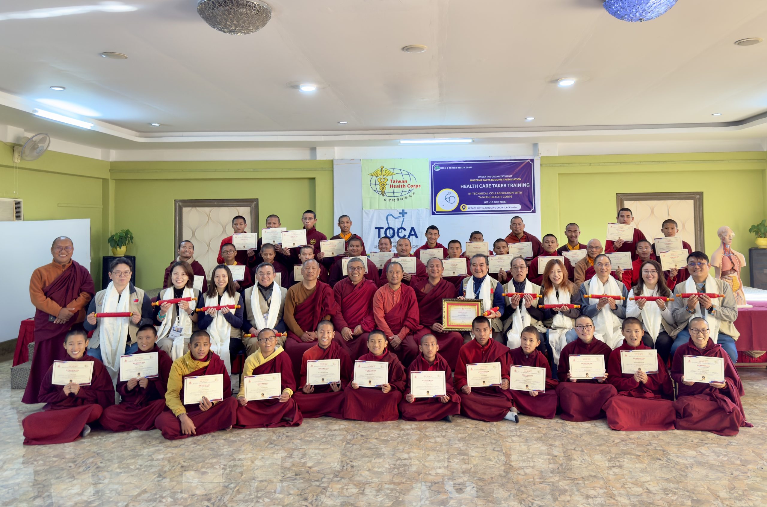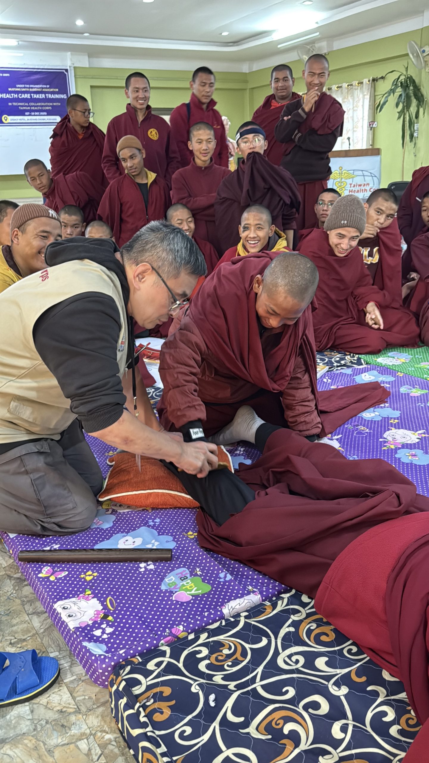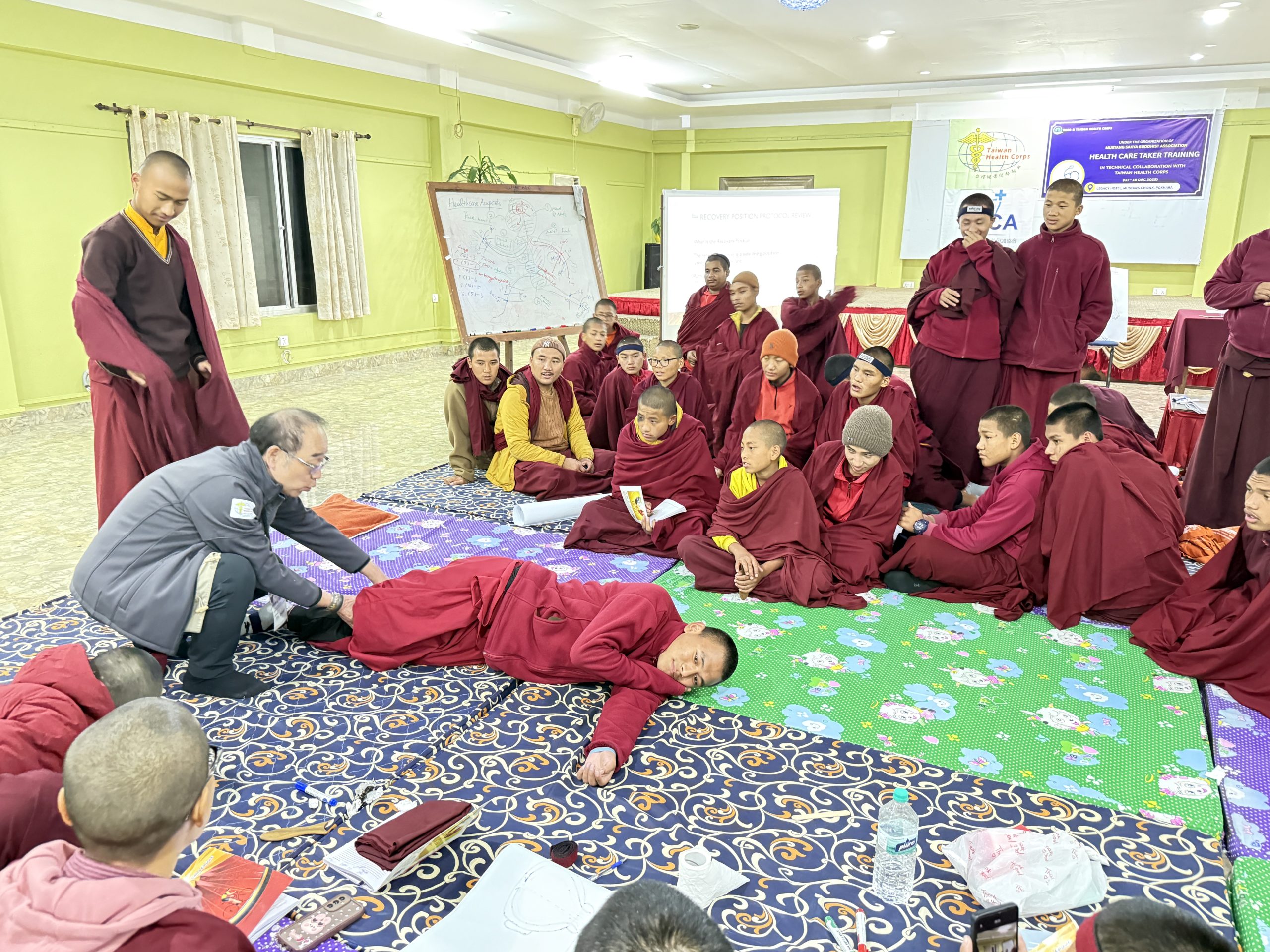 本期培訓歷時十天,透過系統化課程與實務演練,完成對來自尼泊爾木斯塘偏遠山區、下山避冬之薩迦派喇嘛與尼僧之基礎健康照護培力,為高山寺院第一線照護能力奠定更穩固的基礎。