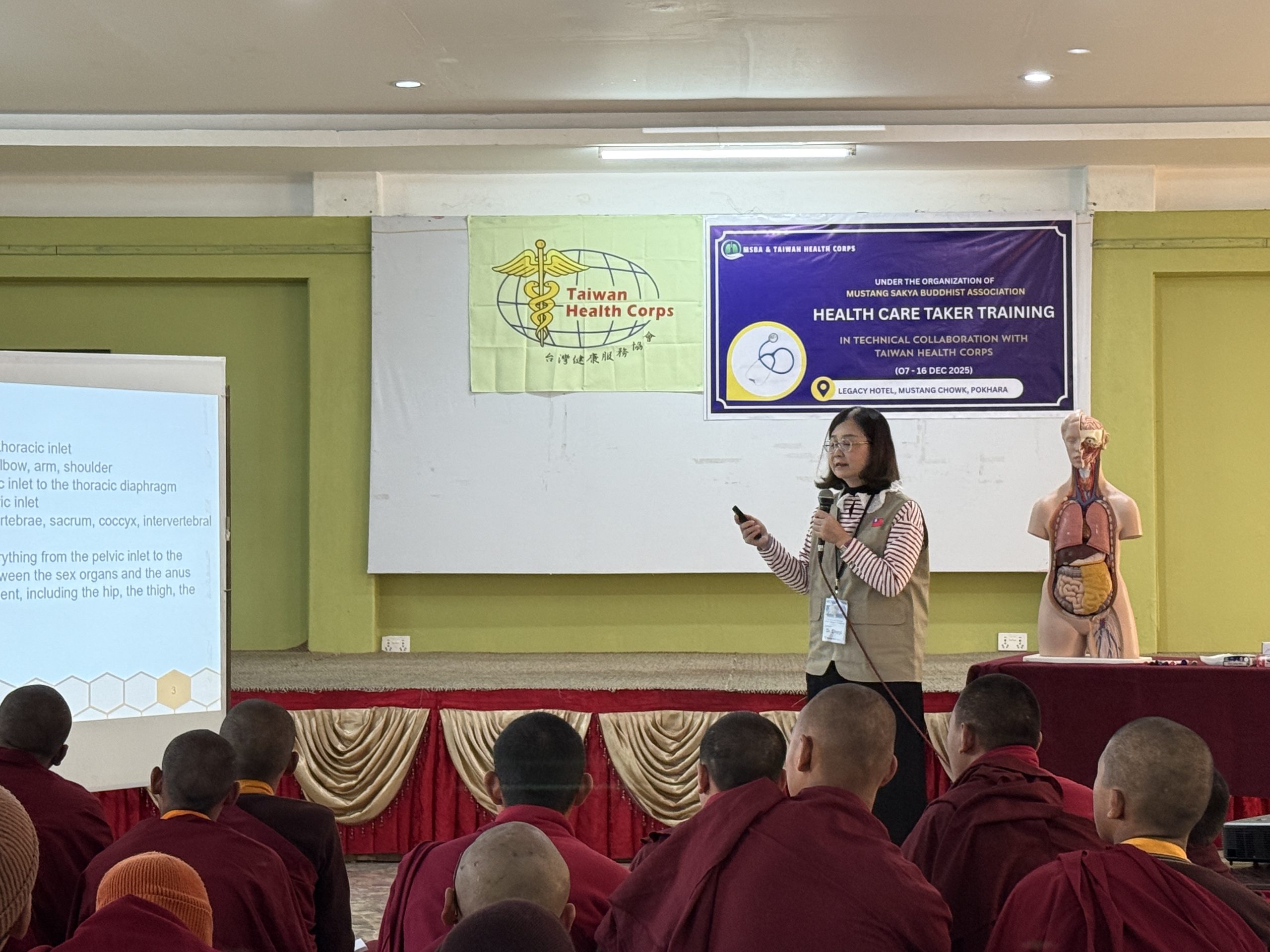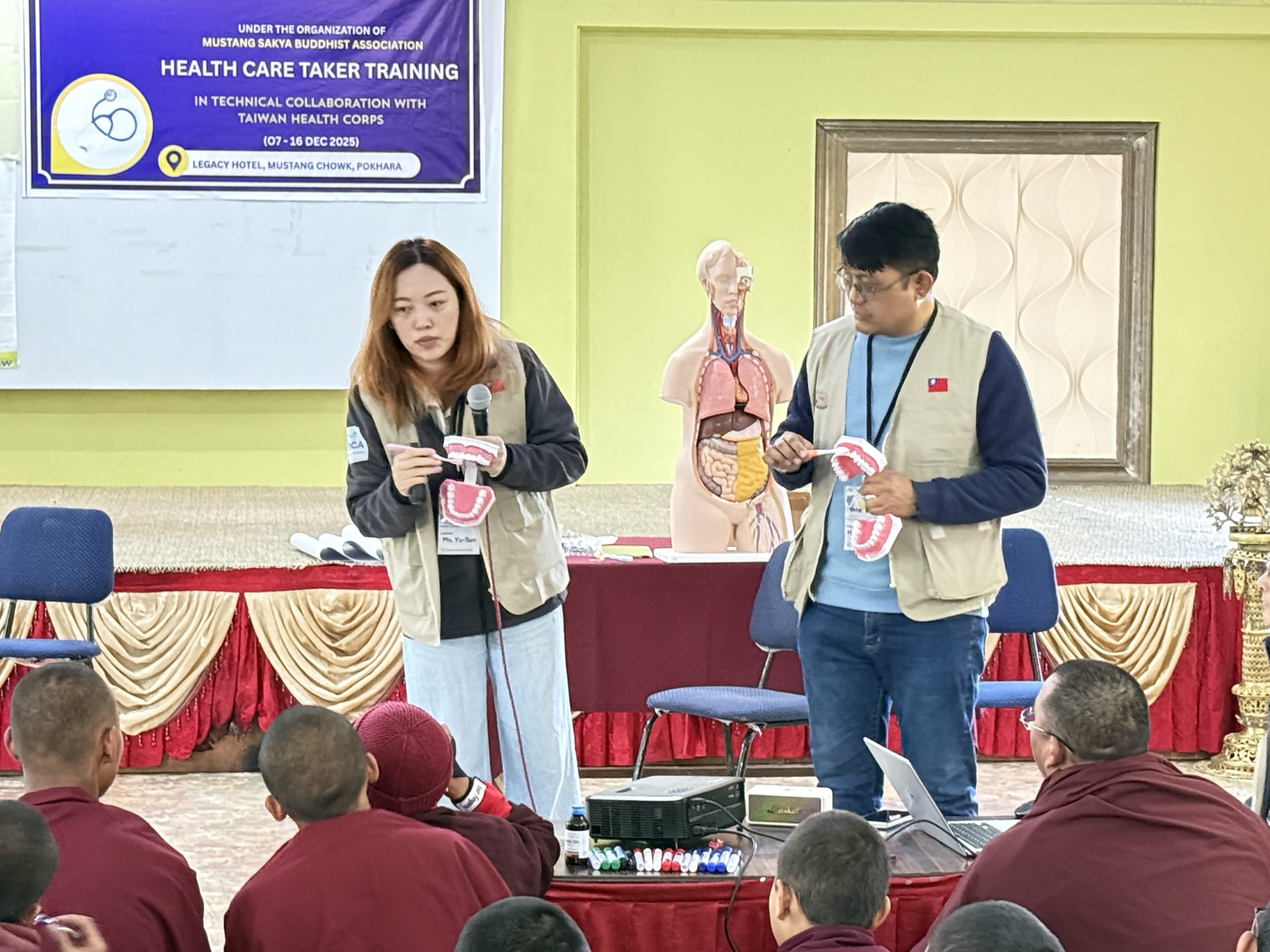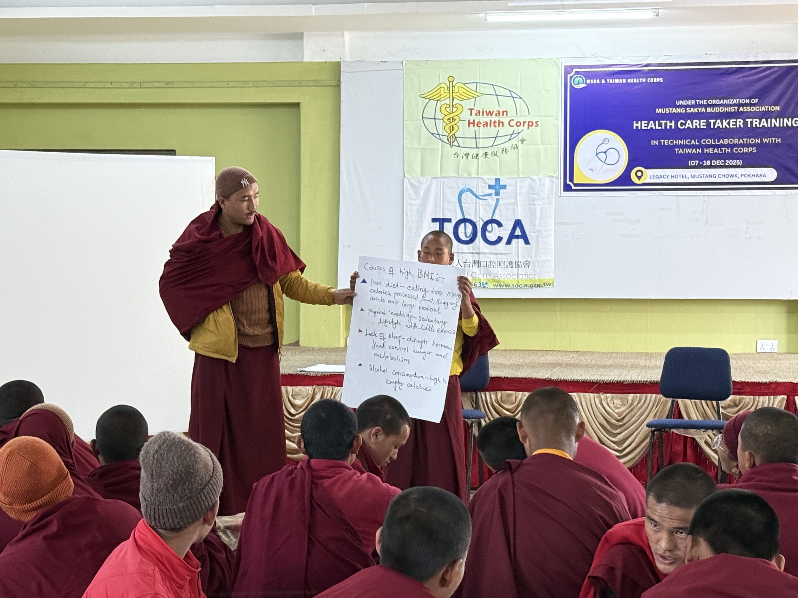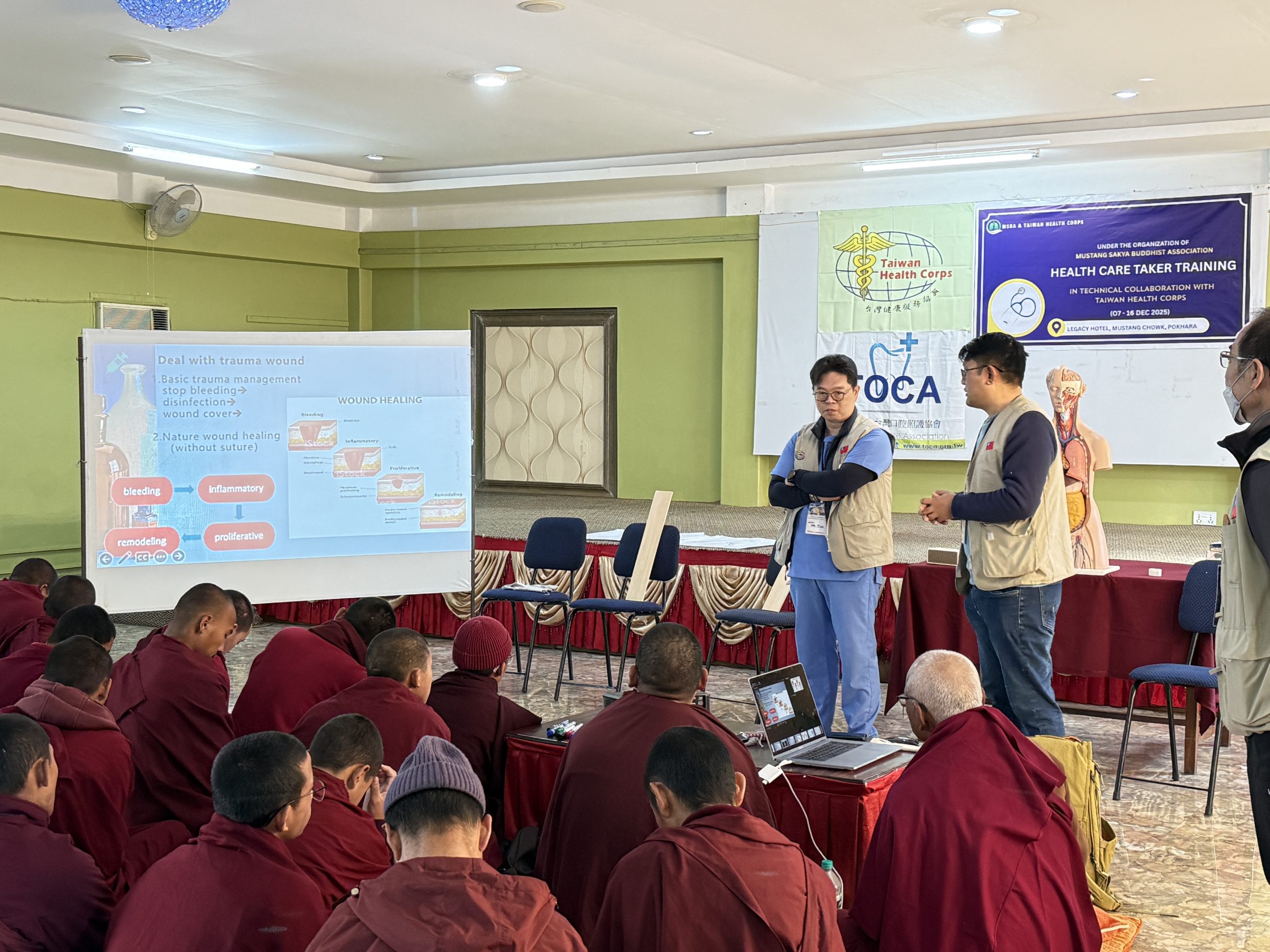 本期培訓歷時十天,透過系統化課程與實務演練,完成對來自尼泊爾木斯塘偏遠山區、下山避冬之薩迦派喇嘛與尼僧之基礎健康照護培力,為高山寺院第一線照護能力奠定更穩固的基礎。